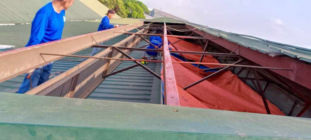On-going 3 warehouses roofing replacement including ventilation, roof frames and painting of Shinkozan Corporation in Silang, Cavite.